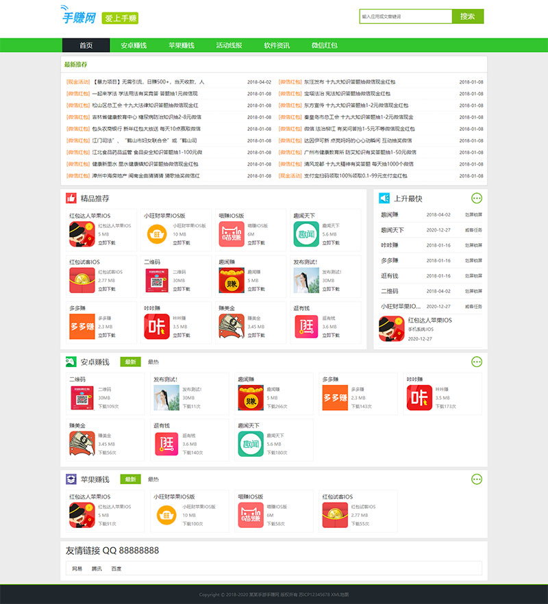 本套织梦模板采用织梦5.7内核开发的模板,这款模板使用范围广,不仅仅局限于一类型的企业,手游手赚、网赚类的网站都可以用该模板。你只需要把图片和文章内容换成你的即可,颜色都可以修改,改完让你耳目一新的感觉!布局规整,利于用户体验,手工书写DIV+CSS,代码精简。 1、该模板不含后台程序,需要到织梦官网下载 www.dedecms.com 2、织梦程序需要授权才能商用。 使用方法:https://www.adminbuy.cn/dedecmsjc/9431.html 手机版图片预览: 电脑版图片预览: