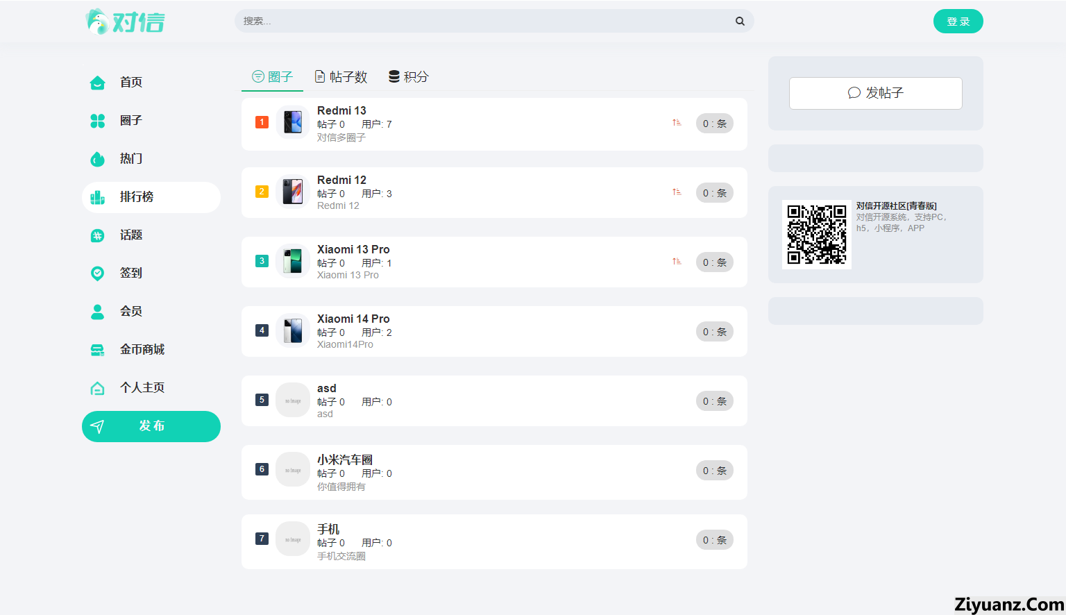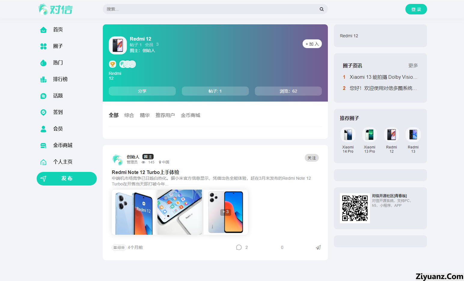 对信系统是一款开源的PHP建站系统,是“多圈”建站系统。专业为产品打造多圈社区,可搭建社区,问答,商城,有pc端,h5,微信小程序,百度小程序。基于商业开源,100%开源,可以商用。