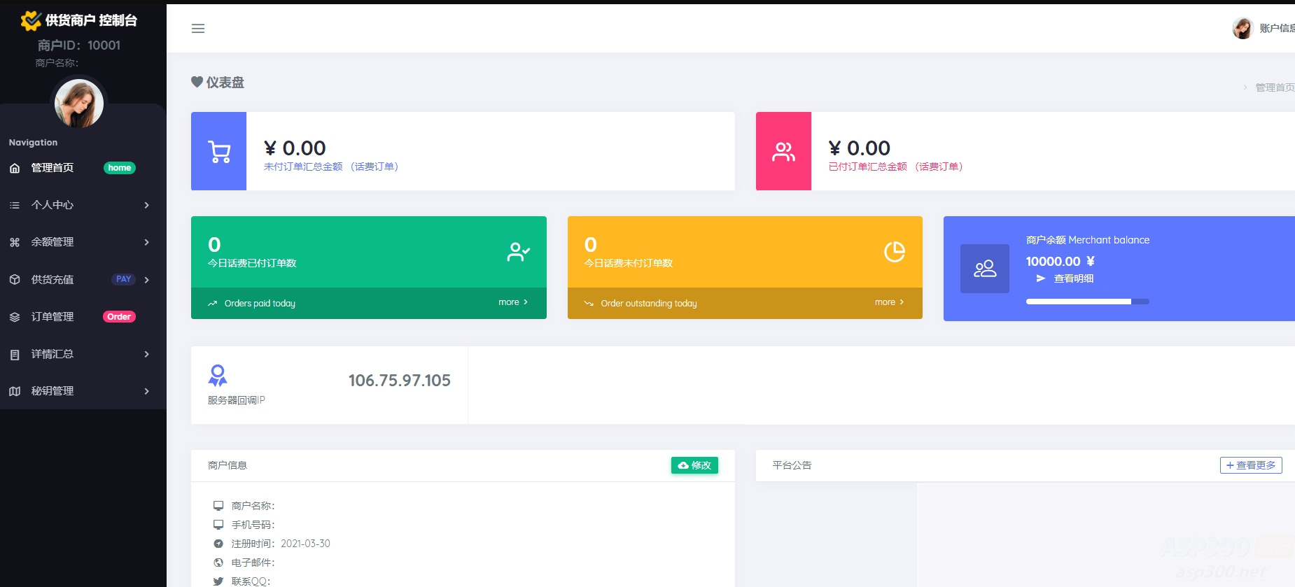 ⑤、有独立的商户后台和供应商后台可供供应商或商户查询订单以及官网订单号使用