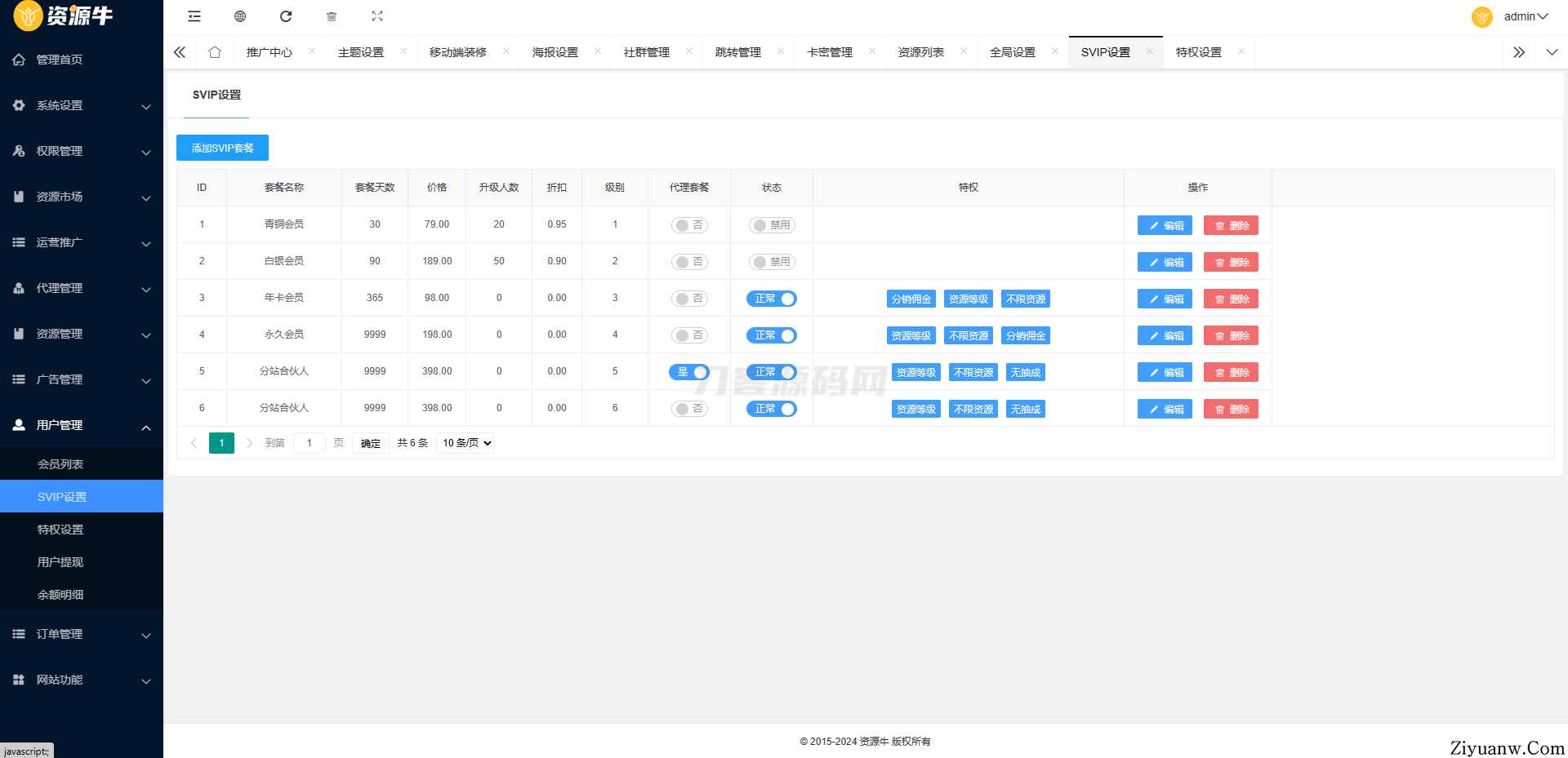● 分销:指用户推广资源获得佣金 二级分销 独立后台代理分站
